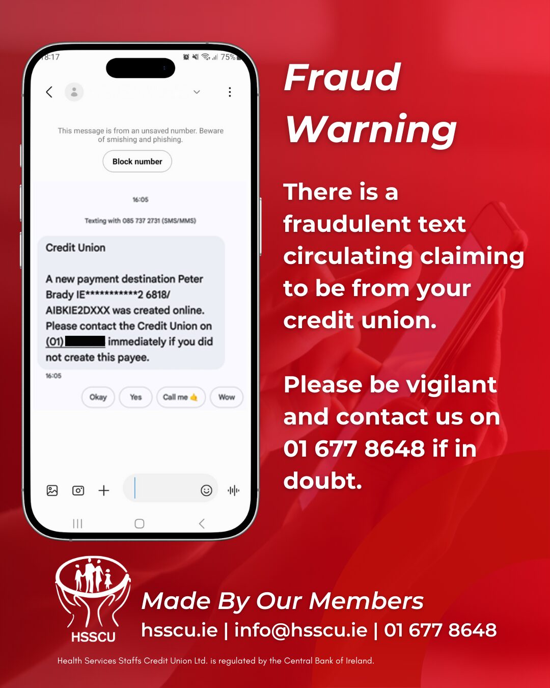 If you are suspicious of any message or call, please contact us directly on 01 677 8648.