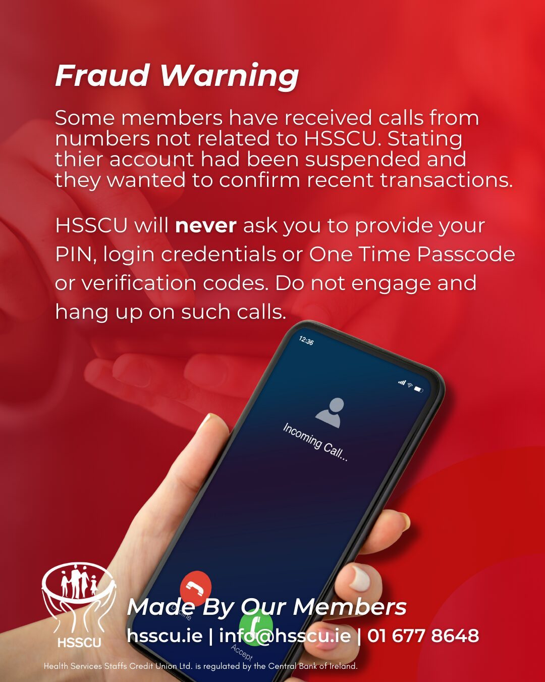 HSSCU will never ask you to provide your PIN, login credentials or One Time Passcode or verification codes. Do not engage and hang up on such calls.